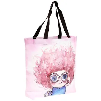 Сумка "Ботаник Титта" розового цвета выполнена из плотного материала. Ручки сумки выполнены из широкой плотной тесьмы коричневого цвета. Сумка декорирована изображением забавного человечка с кудрявыми розовыми волосами и в очках.