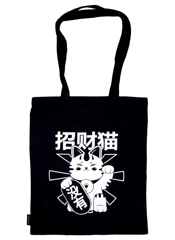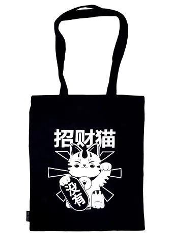 Сумка-шоппер Котик Манэки-нэко, черная (текстиль) (40х32)