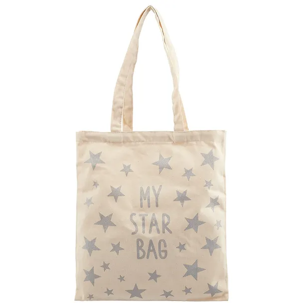 Сумка-шоппер My star bag бежевая, текстиль, глиттер-серебро, 40*32/35см СК2020-36