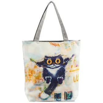 Сумка-шоппер на молнии Черный кот 38*35см (текстиль, флис)