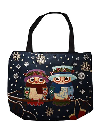 Сумка-шоппер на молнии Две Совы на ветке со снежинками (40х40) (текстиль)