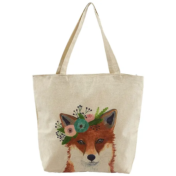 Сумка-шоппер на молнии Лиса акварель (43х40) (текстиль)