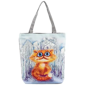 Сумка-шоппер на молнии Рыжая кошка 38*35см (текстиль, флис)