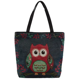 Сумка-шоппер на молнии Сова на ветке (синий фон) (40х40) (текстиль)