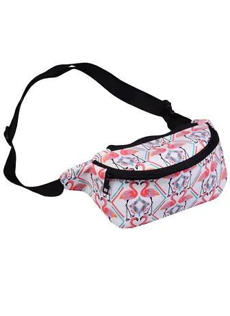 Стильная и практичная текстильная сумка на пояс с ярким принтом Фламинго.
