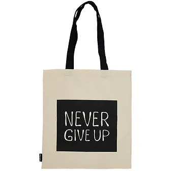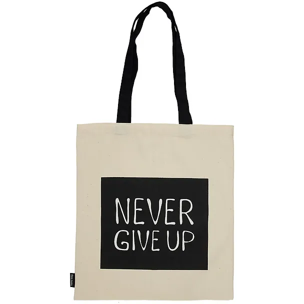 Искала подходящий принт на сумке для подруги, попавшей в трудную жизненную ситуацию. Этот мог бы стать девизом для такого человека, как она. Белое и черное сочетание цветов- как в жизни. После черной полосы обязательно будет белая. А "никогда не сдаваться" обстоятельствам означает всегда быть над ситуацией и в итоге быть победителем.