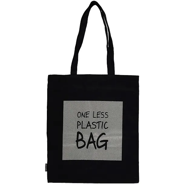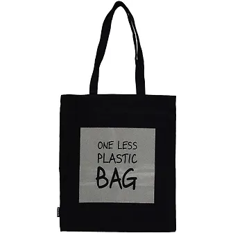 Сумка-шоппер One less plastic bag (светоотражающая) черная, текстиль 40см.*35см.