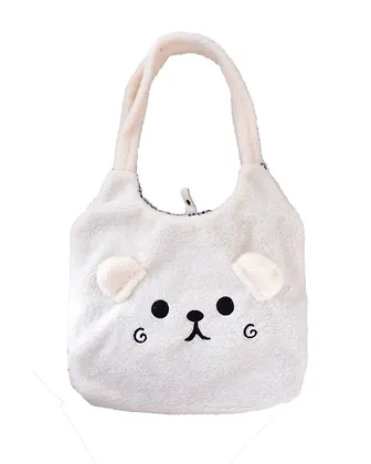 Очень симпатичная сумка из приятного плюшевого материал - на ощупь как мягкая игрушка, в самый раз для ребенка. Ручки выполнены из такого же материала, вшиты в основание крепко. Понравилось и  то, что у сумки есть дополнительная подкладка красивой расцветки внутри, что, определенно, повышает износостойкость изделия. Удобно, что есть и кнопка-застежка, меньше вероятность, что что-то вывалится из шоппера. В целом, вещица понравилась.