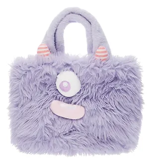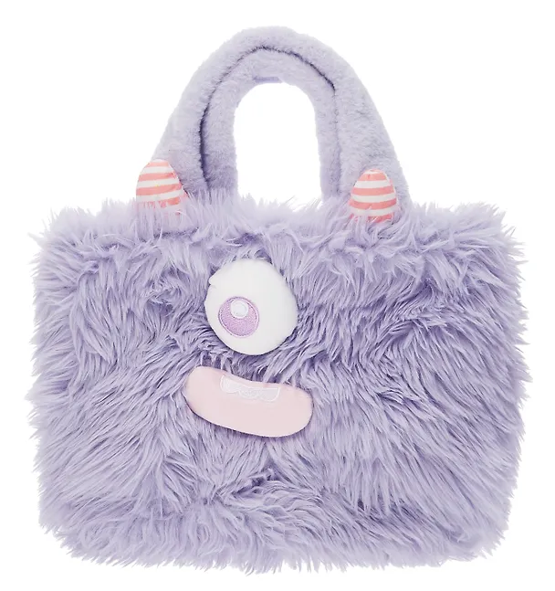 Очень симпатичный шоппер, монстрик похож по дизайну на какого-то покемона, вызывает тёплые ностальгические чувства. Хорошее качество меха, пушистый, объёмный, мягкий, приятный тактильно. Смешной выпуклый глаз в форме сферы: он хорошо закреплён, но не зафиксирован, немного болтается, что создаёт комический эффект.