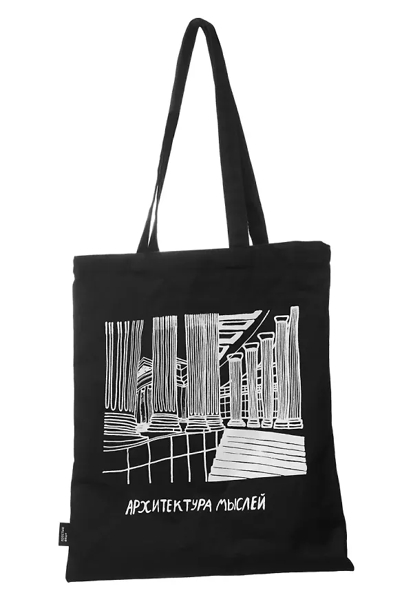 Дизайн сумки-шоппера «Архитектура мыслей» разработан художниками инклюзивных мастерских «Простые вещи» специально для сети «Буквоед»."