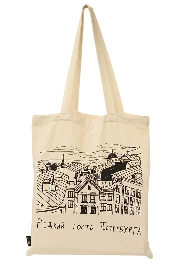 Дизайн сумки-шоппера «Редкий гость Петербурга» разработан художниками инклюзивных мастерских «Простые вещи» специально для сети «Буквоед»."