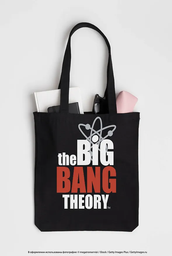 Сумка-шоппер Теория большого взрыва, черная (38х43, длина ручек 58 см)