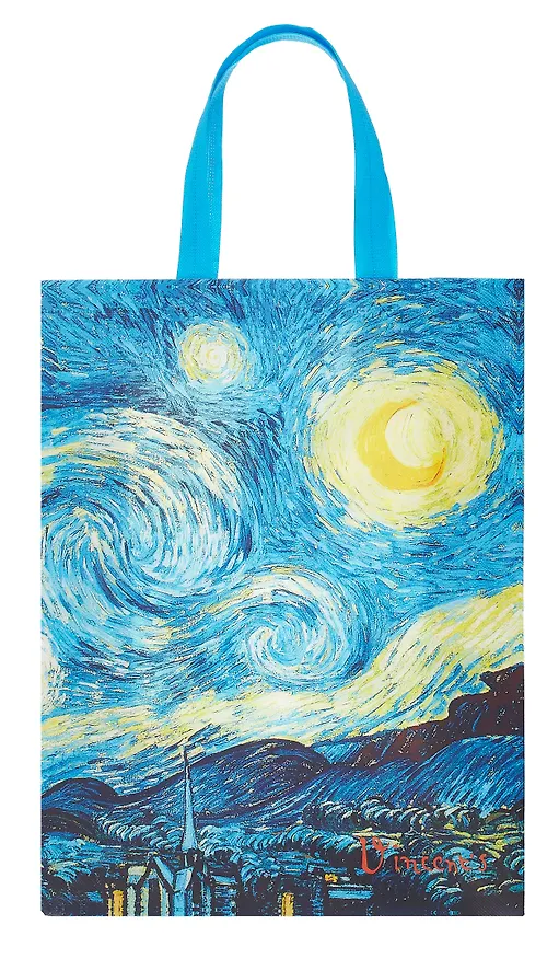 Сумка-шоппер с «Звёздной ночью» Ван Гога сразу привлекает внимание: принт сочный, без зерна, цвета переданы глубоко. Ткань плотная, форму держит, швы ровные. Влезает ноутбук 13'', бутылка воды и пара книг; широкие ручки не впиваются, есть небольшой внутренний карман. За месяц активной носки принт не потрескался, стирку на деликатной пережила нормально. В целом покупкой довольна: стильная и практичная вещь на каждый день. Печать не линяет под дождём, ткань не оставляет катышков, складывается в рюкзак без заломов..