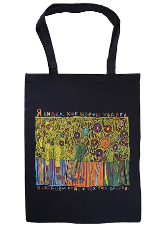 Сумка текстильная Я видел как цветы ходили (черная)(35х47)(Наивно?Очень)