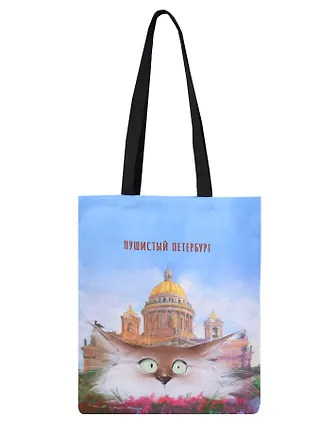 Сумка-шоппер СПб Пушистый Петербург Огюст (черная) (текстиль) (40х32)
