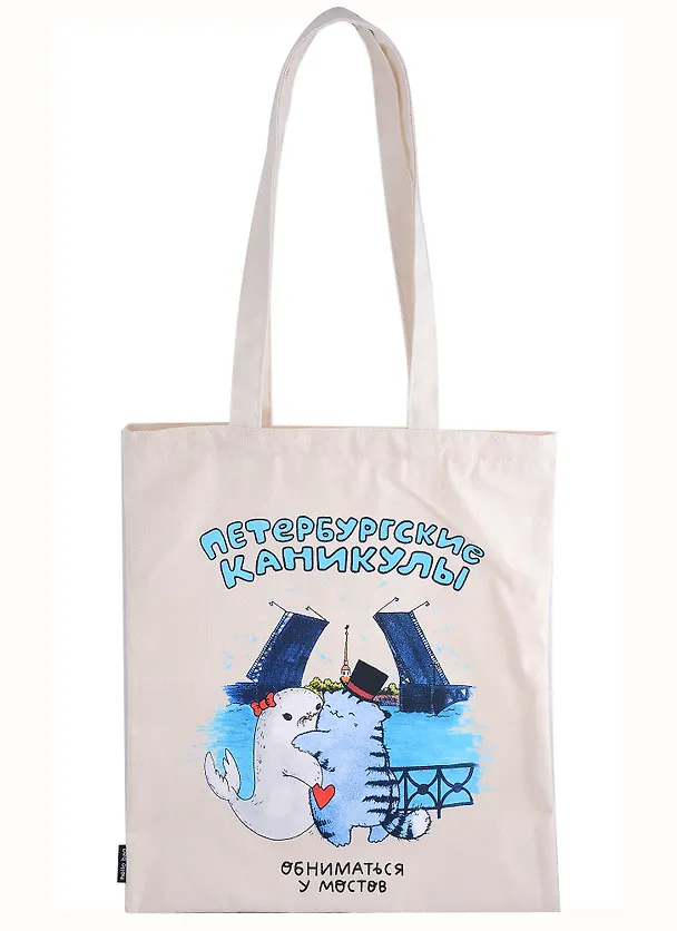 Сумка СПб Петербургские каникулы Обниматься у мостов (бежевая) (текстиль) (40х32) (СК2022-203)