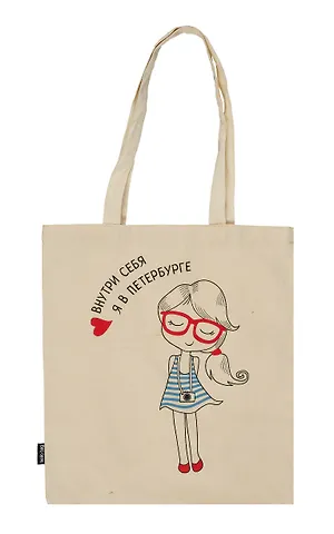 Сумка СПб Внутри себя я в Петербурге, Девочка, бежевая, текстиль, 40*32/35см СК2019-21