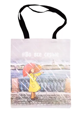 Сумка СПб Во все серые (девочка с зонтом) (цветная) (текстиль) (40х32) (СК2020-70)