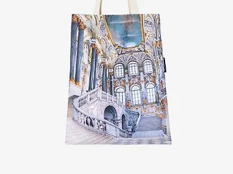 Сумка-шоппер с одним из самых известных видов Зимнего дворца. Образцом для создания принта послужила акварель «Парадная лестница» работы Константина Андреевича Ухтомского (1819 – 1981) из собрания Эрмитажа. Удобные ручки и материал изделия, искусственный габардин, делают сумку удобной для ежедневного использования.