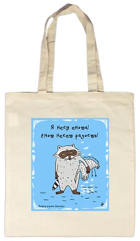 Веселые еноты теперь и на сумках! Легкая, удобная сумка из плотной ткани с цветным рисунком любимых персонажей станет отличным спутником на каждый день. Длина ручки позволяет носить ее на плече. Смешные надписи и авторские рисунки забавных енотов от Карины Илиопуло будут радовать вас каждый день. А также станут отличным подарком для друзей.