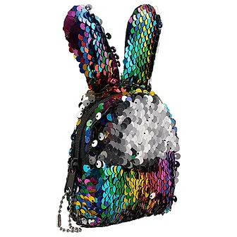 Сумочка-рюкзачок на молнии с пайетками Ушки (10см) (текстиль)