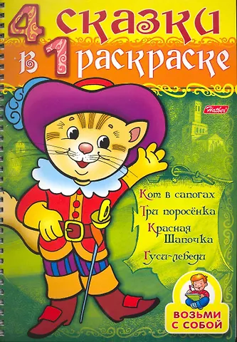 Книга «СуперРаскраска 4 сказки в 1 раскраске Кот в сапогах / Кот в сапогах, Три поросенка, Красная шапочка, Гуси-лебеди (мягк) (пружина). Баранова И. (Русанэк)» есть в наличии в интернет-магазине «Читай-город»