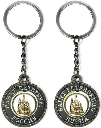 Сувенир, АКМ, Брелок-канат,"Храм "Спас-на-Крови", цвет черный жемчуг, металлическая вставка