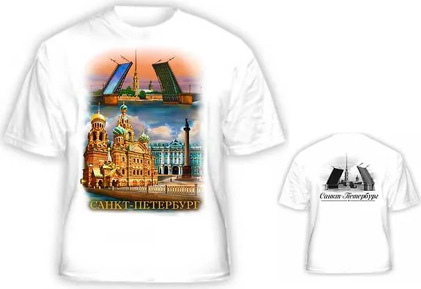 Сувенир, АКМ, Футболка Коллаж.Спас-Дворцовая-Мосты цв.белый размер 52, двусторонняя печать