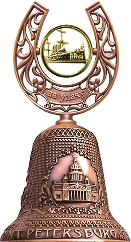 Сувенир АКМ Колокол-подкова 040 вст-фигурн. СПб.Аврора цв.медь