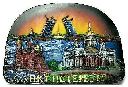 Сувенир, АКМ, Магнит, "Коллаж. Храм "Спас-на-Крови" - Исаакиевский собор - Разводной мост" , 8,5х6 см , полуовал, барельеф, керамический