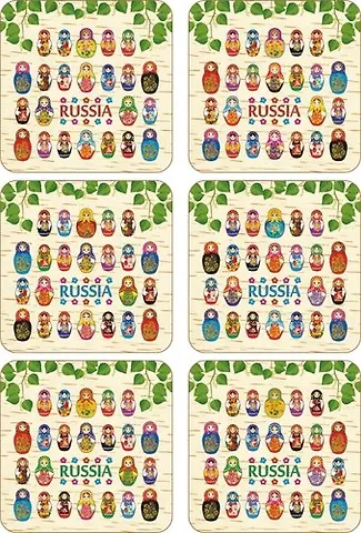 Сувенир АКМ Набор плакеток Много матрешек 6 шт