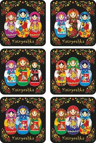 Сувенир АКМ Набор плакеток Три матрешки, черн, 6 шт