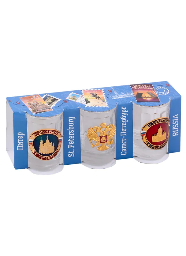 Сувенир, АКМ, Набор стопок Виды СПБ с мет.знач 3шт., стекло CT-M-01-3