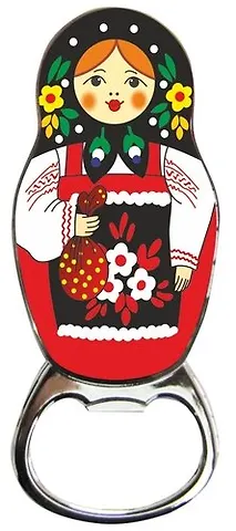 Сувенир, АКМ, Открывашка-магнит "Матрешка красная с черн.платком" 006-34-05