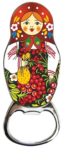 Сувенир, АКМ, Открывашка-магнит "Матрешка с рябинкой с красн.платком" 006-34-02