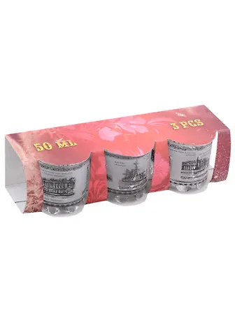 Покупал набор на подарок — вышло удачно. Три стопки с разными петербургскими видами смотрятся стильно: печать четкая, цвета насыщенные, без размытий. Стекло толстое, устойчивое, дно тяжелое — приятно держать, объем около 50 мл. Кромка ровная, без заусенцев, на столе не скользят. Упаковка подарочная, плотная, не стыдно вручить. За месяц активного использования рисунок не стерся, при ручном мытье проблем нет. Отличный сувенир для тех, кто любит атмосферу СПб.