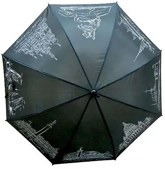 Сувенир, АКМ, Зонт трость полуавтомат СПБ черный, 35TA-01BL