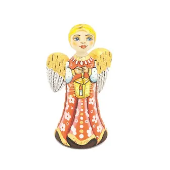 Фигурка ангела деревянная на ленте, выточена из липы, расписана вручную темперными красками, покрыта глянцевым лаком, расцветка в ассортименте.
