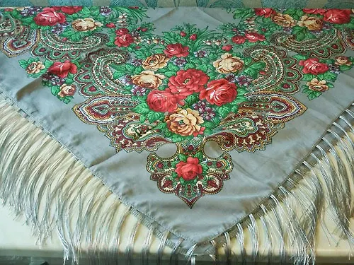 Платок с цветами и бахромой 1х1 м.серый,состав шерсть+вискоза,рекомендуется деликатная стирка