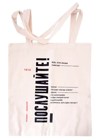 Сувенир Эльсинор Сумка текстильная (лён) 35*40см «Маяковский.Послушайте!»