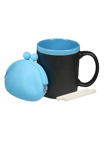 Подарочный набор "ГОЛУБОЙ" арт.41172 (12*11*10,5см, в картонной коробке: кружка объемом 300 мл. (керамика) с меловым грифельным покрытием для записей, мелок для письма (2 шт.), кошелек для мелочи (силиконовая резина) / 12*11*10,5 арт.41172