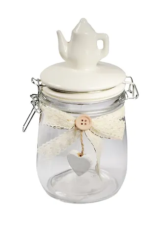 Стеклянная ёмкость для продуктов "Белый кофейник" арт.40631 (11,5*21см, объем 800 мл, с декоративной крышкой из керамики, с бугельным замком из нержавеющей стали) / 11.5*21 арт.40631