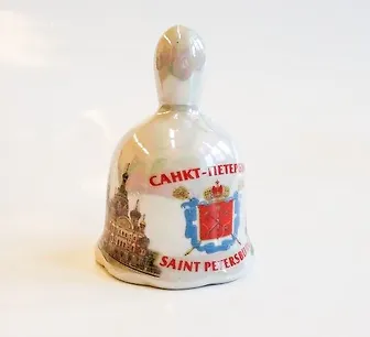 Колокольчик СПб коллаж ГЕРБ белый перламутр 9,5 х 6 см [ВЕ8-90006]