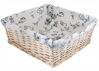 Короб для хранения "Белые цветы" размером 45х45х18 см, выполнен из плетеных ивовых прутьев (обработанных антисептиком, окрашенных тонировочной краской, покрытых лаком), с внутренней частью из ткани (50% хлопок, 50% полиэстер).Прекрасно подойдет для вашего интерьера, практичный короб для любого хранения.