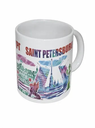 Сувенир Кружка "СПб коллаж Грифоны, Эрмитаж" фарфор, 350мл [00086]