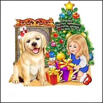 Сувенир, Магнит деревянный Девочка с собакой 10*10см в ассортименте