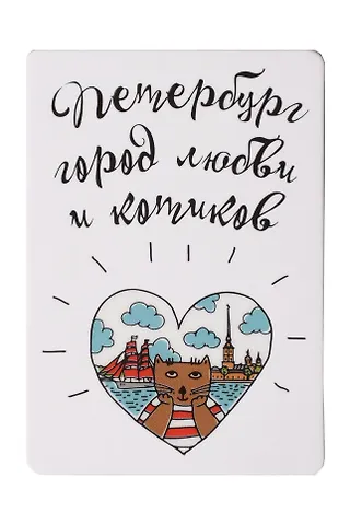Сувенир, Магнит Петербург - город любви и котиков с УФ лаком 5,5*8см