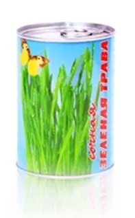 В банке находится волшебное растение: откройте крышку, посадите семена в землю, полейте водой и очень скоро вас будет радовать сочная зеленая травка.
