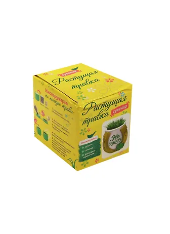 Обзаведитесь своим собственным газоном, который будет радовать вас свежестью и летними красками круглый год. Растущая трава в горшочке наполнит ваш дом или рабочее место особым уютом, и не потребует особой заботы. В набор входит всё необходимое: «горшочек», семена, грунт и инструкция. Вам нужно перемешать содержимое пакетиков и периодически поливать. В скором времени вы увидите плод ваших стараний.