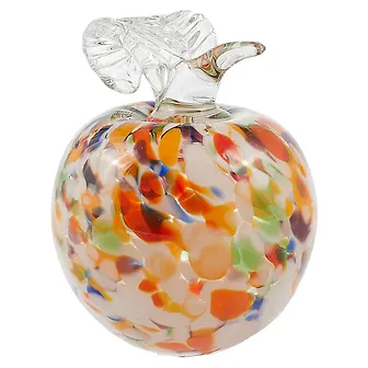Уют в доме создают детали. Например, стеклянная фигурка в виде разноцветного яблока. Она станет прекрасным украшением вашего дома или отличным пополнением коллекции слоников. Посмотрите, как красиво сочетаются яркие крапинки на бочках стеклянного фрукта.